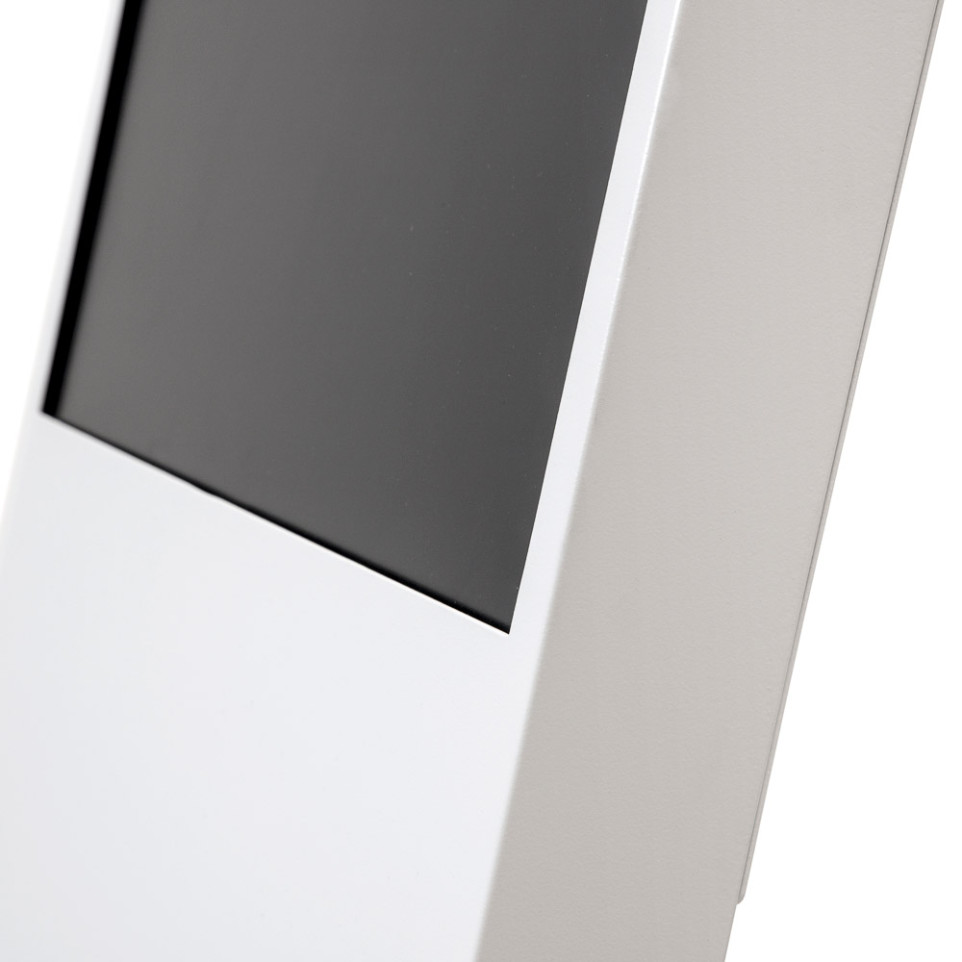 Chevalet Digital [Spectrum] avec écran Samsung 43" blanc, conçu pour une présentation dynamique de contenus visuels dans des espaces professionnels, salons, points de vente ou halls d’accueil. Idéal pour attirer l’attention grâce à son affichage au niveau des yeux et sa mobilité intégrée.