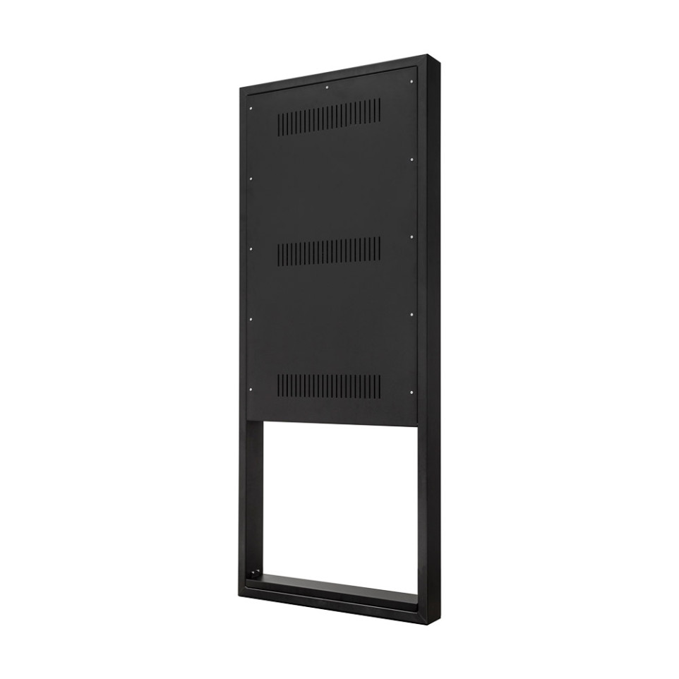 Totem digital extérieur équipé d’un écran Samsung de 55 pouces, conçu pour l’affichage dynamique de contenus numériques dans des environnements publics, espaces commerciaux ou zones à forte fréquentation.