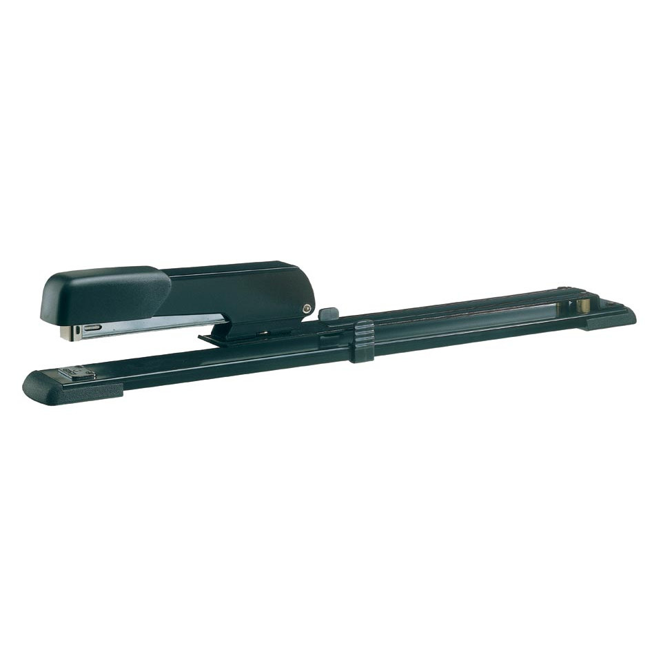 Agrafeuse longue portée conçue pour relier jusqu’à 20 feuilles avec précision. Adaptée pour un usage bureautique, elle offre une grande profondeur d’agrafage jusqu’à 320 mm, idéale pour la création de brochures ou la reliure de grands documents au format A3. Son coloris noir s’intègre discrètement à tout espace de travail.