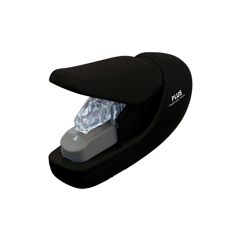 Agrafeuse sans agrafes noire, compacte et pratique, permettant de relier jusqu’à 5 pages sans utiliser d'agrafes métalliques. Solution idéale pour le bureau, l’école ou la maison, elle garantit sécurité et simplicité au quotidien.