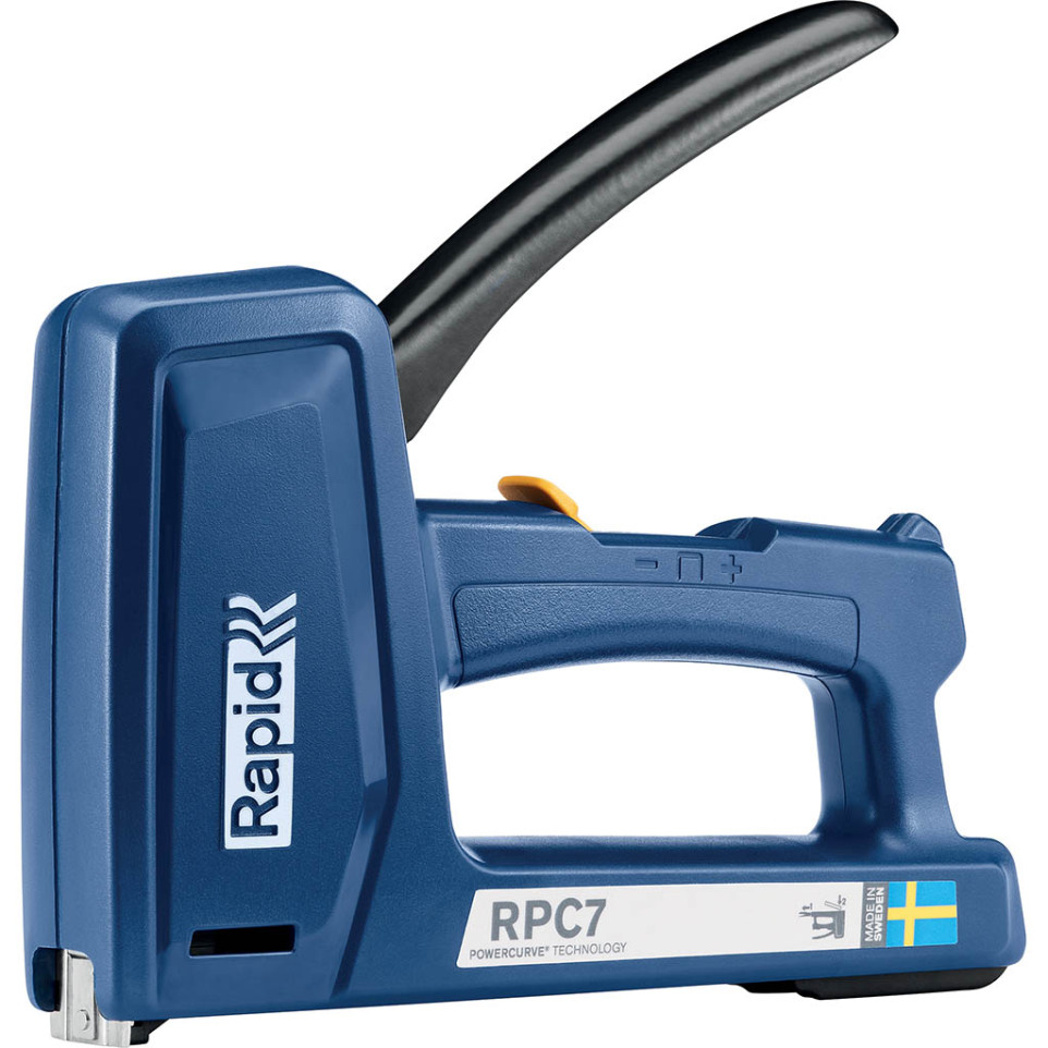 L’agrafeuse RPC7 s’utilise en insérant le consommable adapté, puis en réglant la force de pénétration. Elle accepte différents types d’agrafes et de pointes, ce qui la rend efficace sur une grande variété de matériaux, du tissu au bois, jusqu’aux câbles basse tension. Son mécanisme limite l’effort requis et permet un travail précis, même sur des supports durs.
