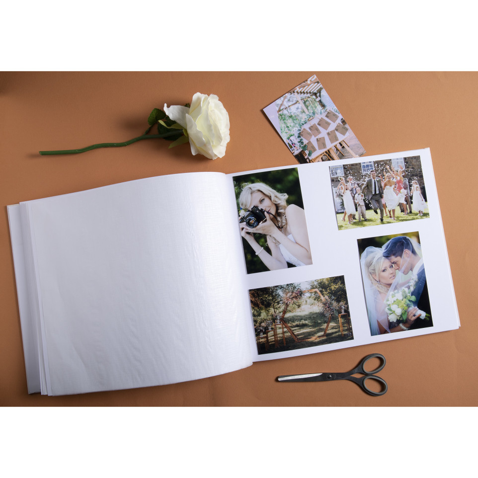 Album photo à vis 40 pages blanches Art La finesse et le design sobre et chic des albums photos Art en font l'objet idéal pour recueillir les magnifiques clichés du plus beau jour de votre vie. La matière en simili-cuir de la couverture ivoire ou noire mat est mise en valeur par le marquage brillant de la forme artistique, qui peaufine le caractère raffiné et élégant de l'album. L'album traditionnel à vis 37x29cm est parfait pour présenter des photos de tout format à coller, portrait ou paysage, jusqu'au très grand agrandissement. Il peut conserver jusqu'à 4 photos par page. De plus, il est possible d'augmenter sa capacité en ajoutant des feuillets. La qualité de sa couverture en papier matière haute résistance avec timbrage garantit une excellente tenue dans le temps. Les pages intérieures de l'album sont réalisées en carte blanche rigide 250g de très haute qualité pour une excellente conservation des clichés, même en collage recto/verso grâce à ses feuilles protectrices cristal. Ce produit a été designé à Paris et il est fabriqué à 100% dans nos usines en France, et il constitue une option de choix si vous cherchez un produit de qualité et durable. La capacité de l'album Art au format 37x29cm et 40 pages est de 160 photos 10x15cm.
