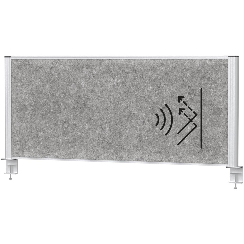 Cloison acoustique pour bureau, durable et conçue pour améliorer le confort sonore et l’organisation des espaces de travail. Adaptée à la création de zones de concentration ou de séparation dans les environnements professionnels, format 120 x 50 cm, couleur gris foncé, cadre argent.