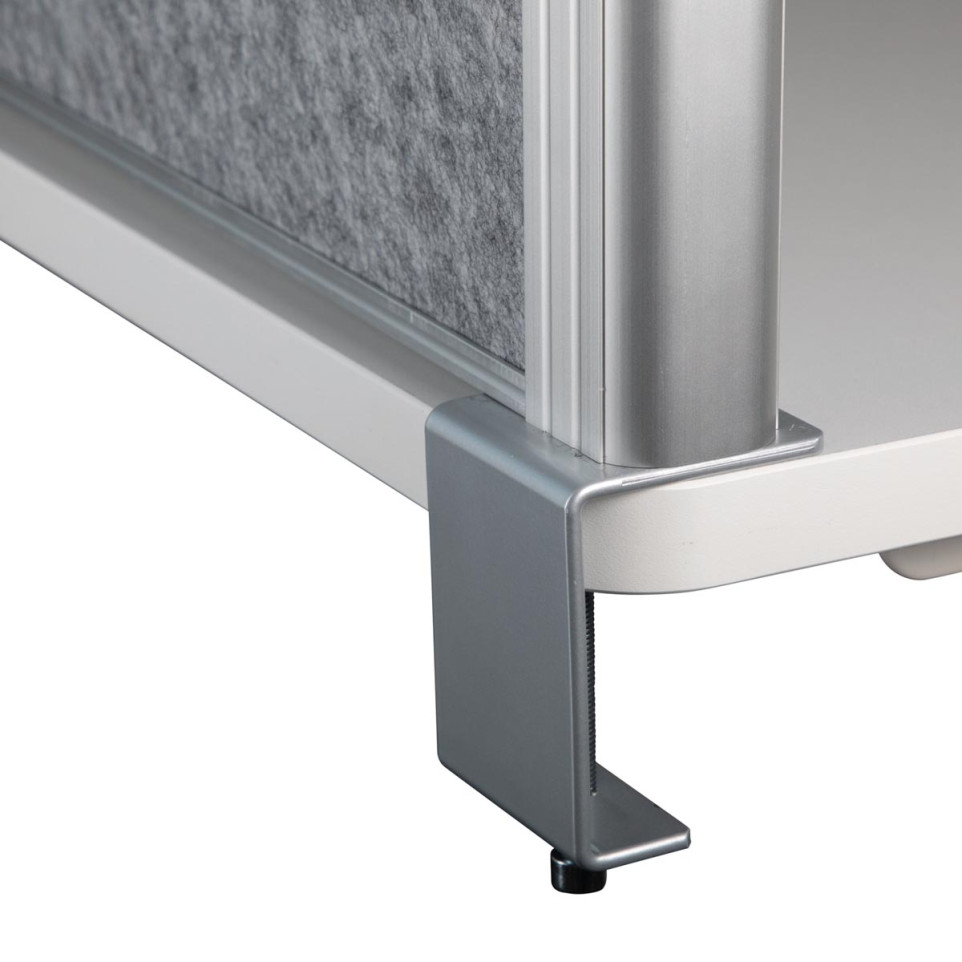 La cloison se fixe aisément sur le plateau d’un bureau à l’aide de ses pinces en acier, sans perçage. Elle atténue efficacement le bruit ambiant, délimite les espaces et protège visuellement, favorisant ainsi la concentration individuelle ou le travail en équipe dans un open-space ou un bureau partagé.