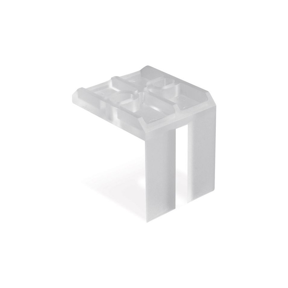Blocage de porte en plastique conçu pour le rail de guidage supérieur des systèmes ERGO 18, NOVO S 18 et 18/4, LOCA 18 et 18/4, ainsi que NERO 18/4. Idéal pour sécuriser l’arrêt des portes coulissantes dans les aménagements de dressing.