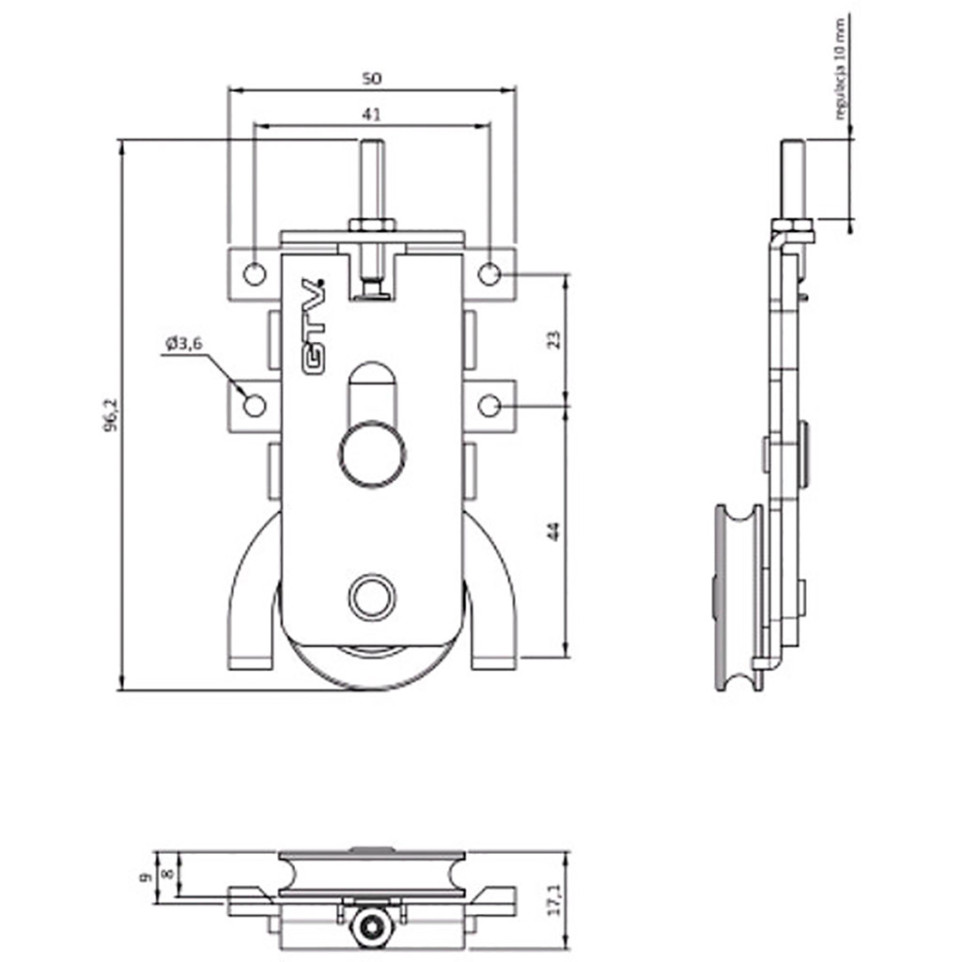 Chaque roulette est conçue pour des panneaux jusqu’à 50 kg.