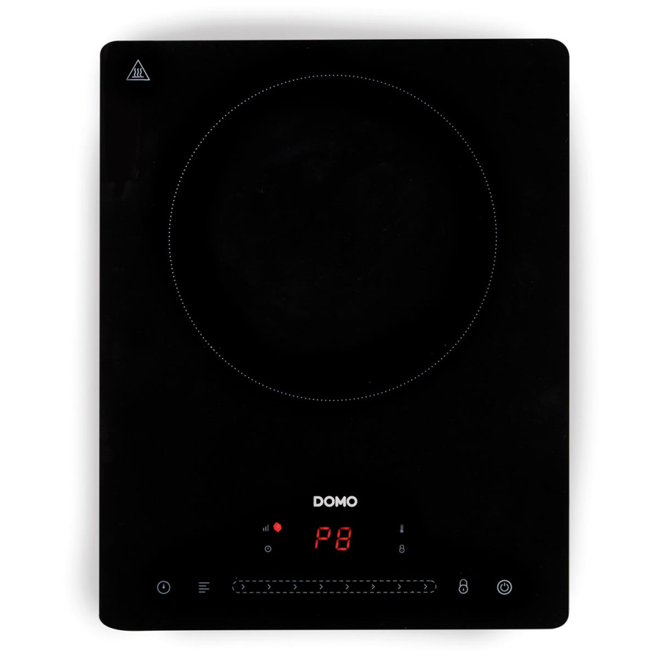 Plaque à induction compacte Domo 1 feu, idéale pour les petits espaces et la cuisson rapide et précise grâce à ses 2000 W de puissance.
