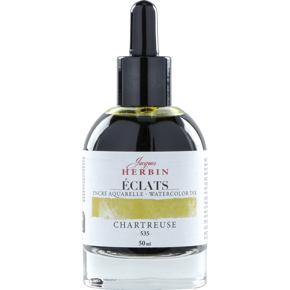 Encre aquarelle Eclats en 50ml Gamme d'encres pour artistes de 70 couleurs. 62 teintes aquarelles sont à base de colorants, elles sont uniques, lumineuses, intenses et transparentes. Encres miscibles entre elles et pouvant être utilisées telles quelles ou diluées pour donner naissance à une multitude de nouvelles nuances des plus vives au plus pastelles. 8 teintes sont pigmentées (blanc, or, cuivre, argent et les 4 teintes fluos (rose, vert, orange, jaune)). Ces encres sont pigmentées, opaques et couvrantes et sont à utiliser, de préférence, concentrées. L'encre Eclats est à utiliser de préférence au pinceau, à l'aérographe voire au porte-plume sur du papier aquarelle et du carton. Flacon en verre avec une pipette pour faciliter les mélanges. Les teintes sont disponibles en flacon de 250ml (63 couleurs) et 1000ml (5 couleurs). Fabrication en France. Livré par 4.
