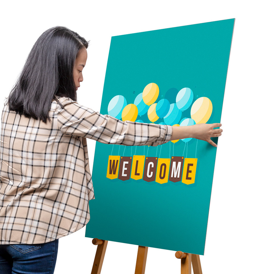 Le chevalet se positionne au sol ou sur une surface plane pour maintenir et exposer un tableau ardoise. Il convient aux espaces commerciaux, salons, zones d'accueil et points de vente souhaitant afficher des informations ou messages de manière visible et élégante.