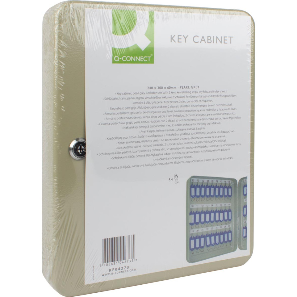 Armoire à clés Q-CONNECT pour 54 clés, conçue pour organiser et sécuriser les jeux de clés dans les environnements professionnels, privés ou publics. S’installe facilement au mur et garantit une gestion ordonnée des accès.