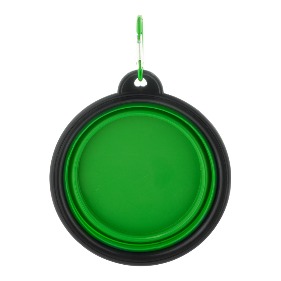 Gamelle pliable pour chien en TPR vert citron, dotée d'un mousqueton assorti pour un transport facile. Capacité de 450 ml, idéale pour hydrater ou nourrir votre animal lors de vos déplacements et activités en extérieur.