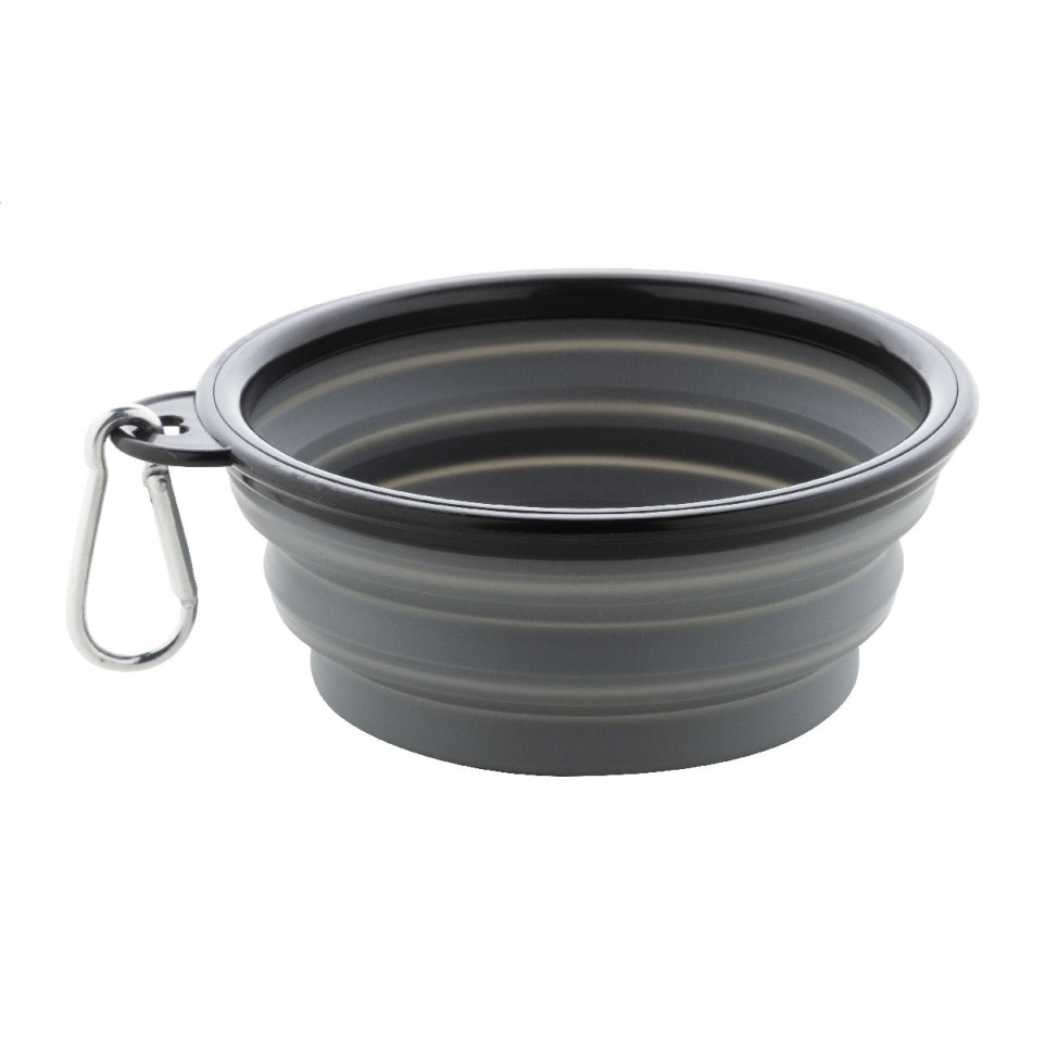 Gamelle pliable Chappy pour chien en TPR de haute qualité avec mousqueton assorti. Légère et compacte, cette écuelle grise de 450 ml est parfaite pour les déplacements et voyages avec votre compagnon à quatre pattes.