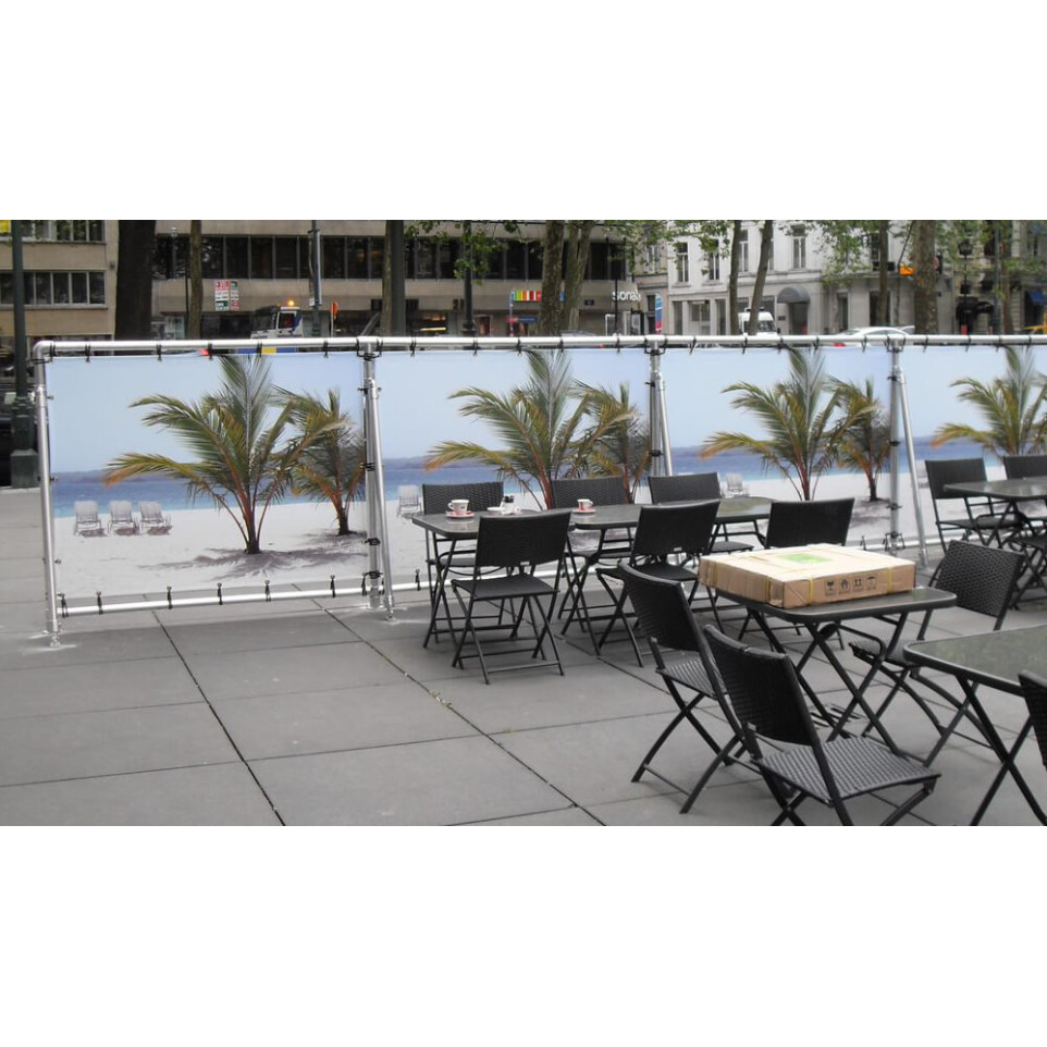 La laize imprimable maximale est de 310 cm. Si le plus petit côté dépasse cette dimension, la bâche sera assemblée en plusieurs parties soudées.