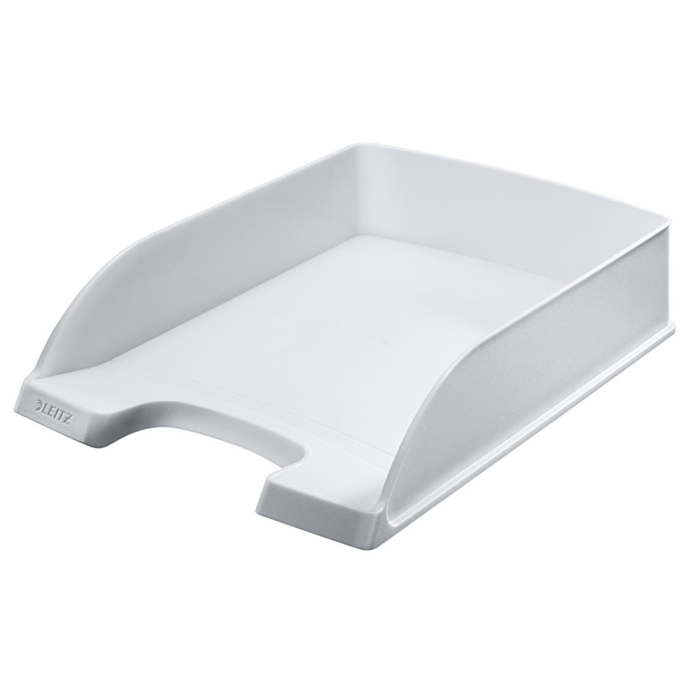 Bac à courrier blanc Leitz Plus 5227 conçu en polystyrène solide pour organiser et stocker efficacement les documents au format A4 dans tout environnement de bureau. Idéal pour garder une surface de travail claire et ordonnée.