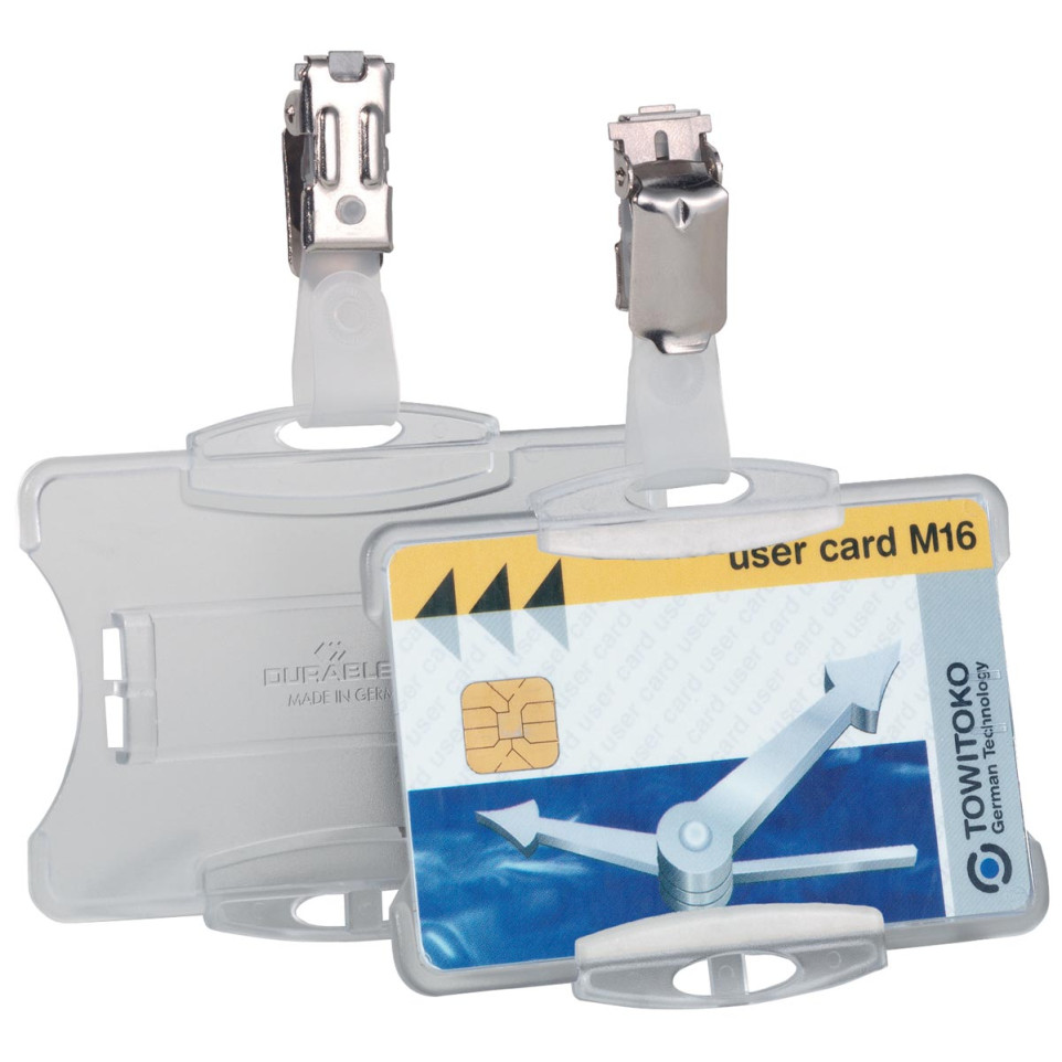 Porte-nom Durable avec clip, format 54 x 85 mm, idéal pour les badges professionnels ou événements. Conçu en plastique transparent, il protège la carte et maintient la bande magnétique à l’abri tout en assurant une parfaite visibilité des informations.