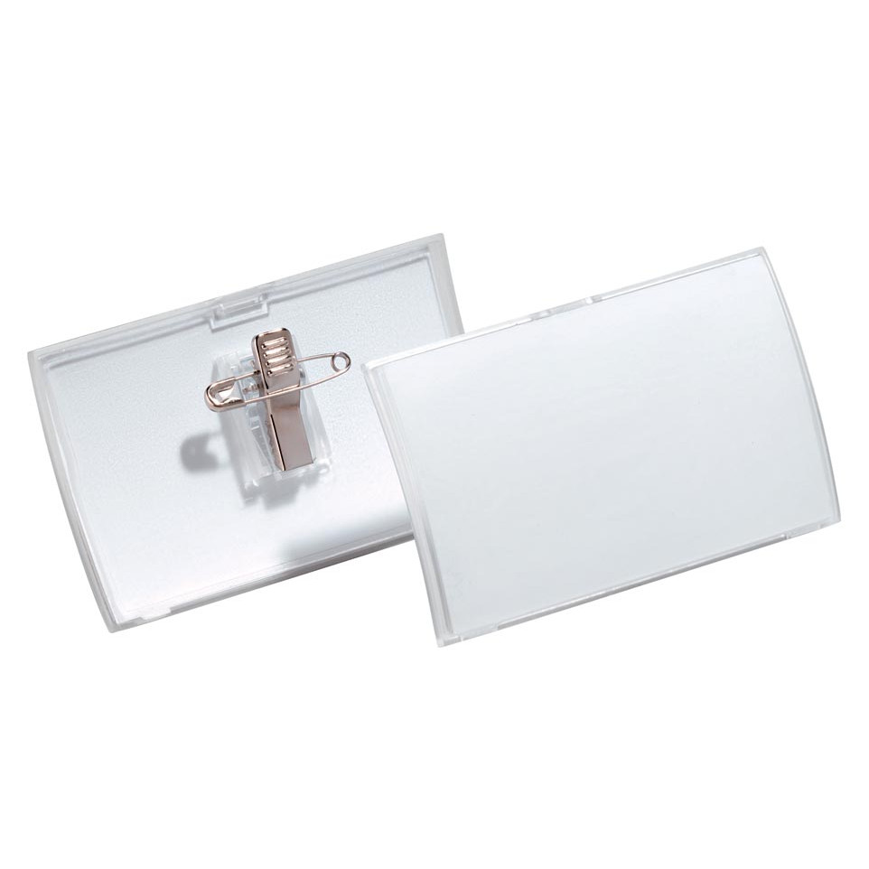 Badge pliable Durable Click Fold avec combiclip, au format 54 x 90 mm, conçu pour un affichage d’identification professionnel lors de conférences, séminaires ou événements. Boîte de 25 pièces, pratique pour les usages collectifs.