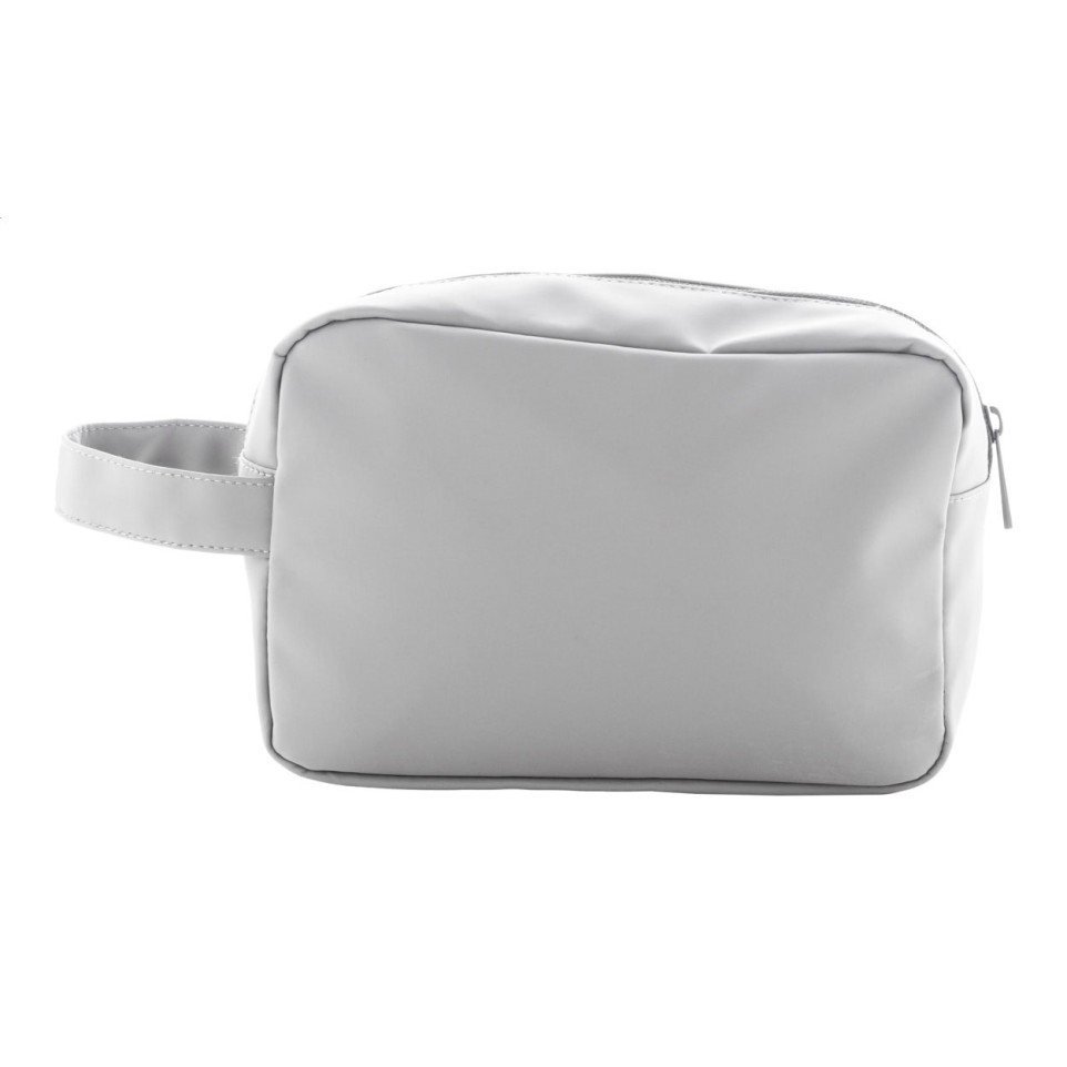 La trousse de toilette Cospu gris en RPU est un accessoire de voyage pratique avec deux compartiments zippés et une poignée. Fabriquée en PU recyclé souple, elle allie fonctionnalité et conscience environnementale pour vos déplacements.
