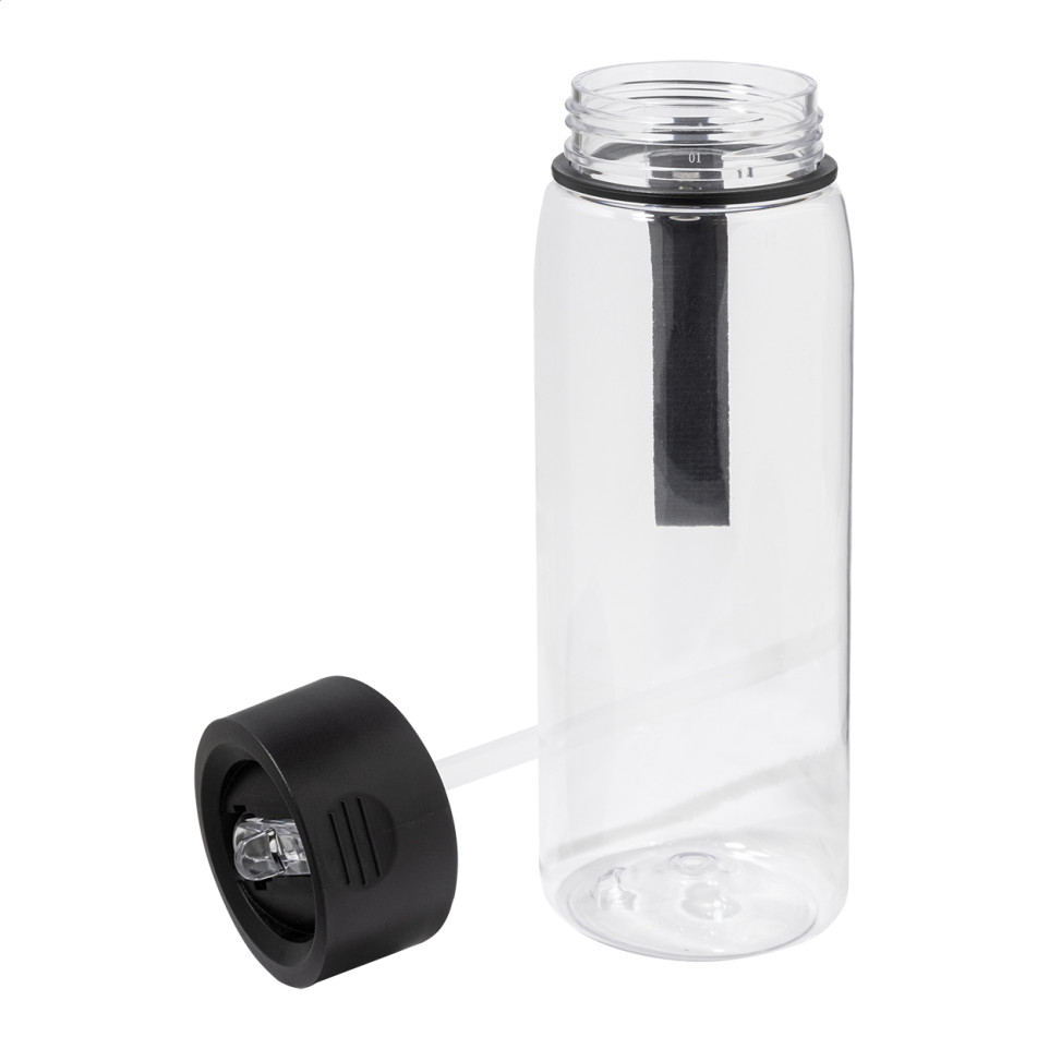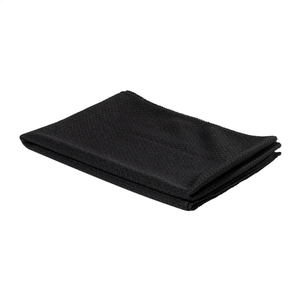 La Fitmax noir est une bouteille de sport en RPET de 800 ml accompagnée d'une serviette rafraîchissante, idéale pour les activités sportives et les déplacements actifs.
