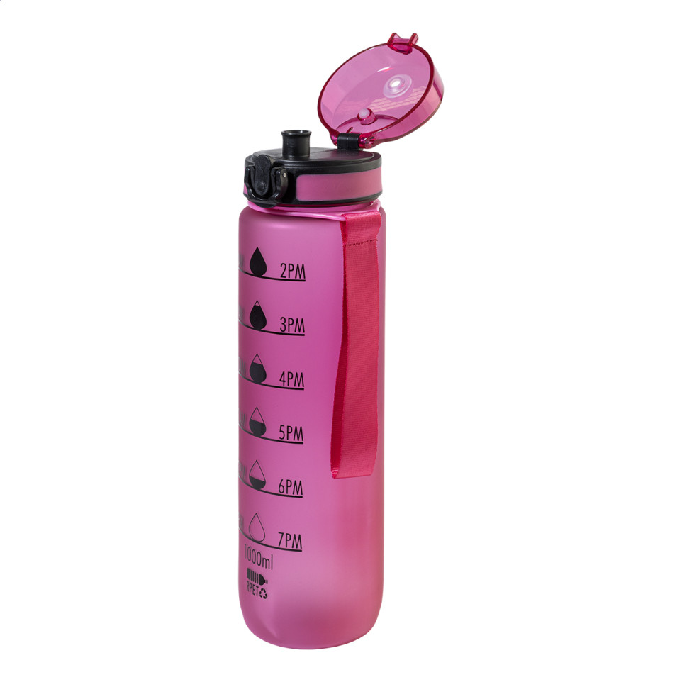 Gourde de sport Sipcount fuchsia en RPET de 1 000 ml, idéale pour les entraînements et activités quotidiennes, avec graduations motivantes de volume et de temps pour un suivi hydratation efficace.