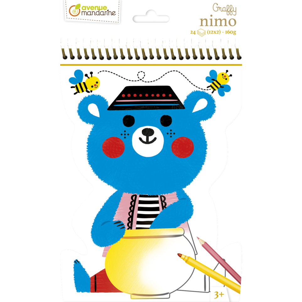 Graffy Nimo, Ours Découvrez les Graffy Nimo !Des carnets de coloriages à la forme déclinés autour d'un même animal. Papier dessin 160g, formes prédécoupées, 12 dessins répétés 2 fois soit 24 feuilles. Certifié PEFC pour une gestion raisonnée des forêts. Conforme aux normes CE.