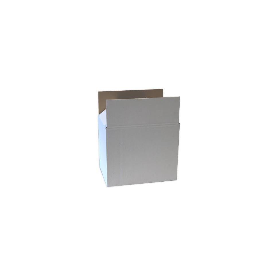 Boîte d’expédition blanche en carton cannelé simple, dimensions 430 x 320 x 90 mm, conçue pour protéger et expédier vos produits en toute sécurité. Pratique pour le stockage et l’envoi de marchandises variées.
