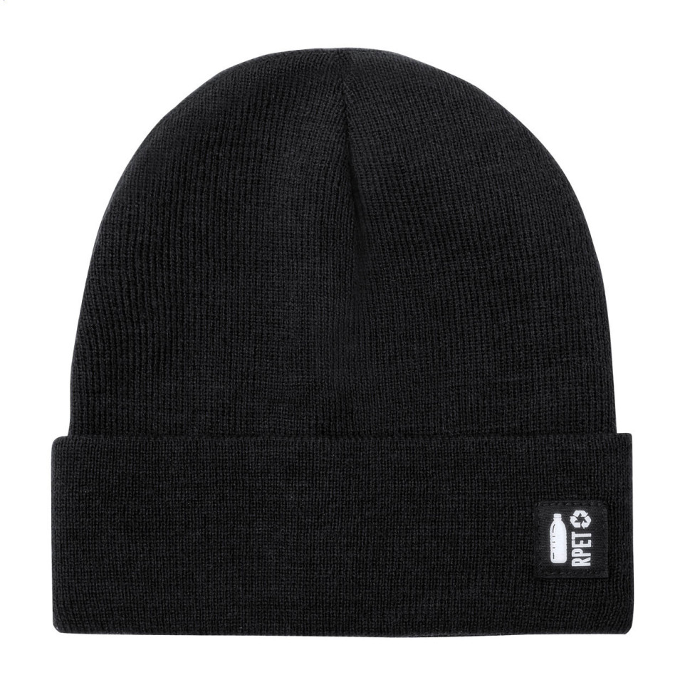 Bonnet d’hiver Peaky noir conçu en polyester recyclé RPET 300 g/m². Idéal pour affronter le froid tout en adoptant un style urbain moderne lors de vos déplacements quotidiens ou de vos activités extérieures.