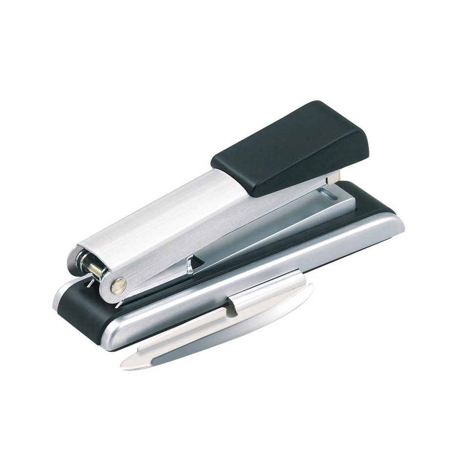 Agrafeuse Bostitch Flat Clinch chromé/noir conçue pour un usage de bureau, idéale pour regrouper jusqu’à 25 feuilles. Fournie avec un arrache-agrafes intégré et 200 agrafes, elle combine efficacité et praticité pour le classement quotidien.