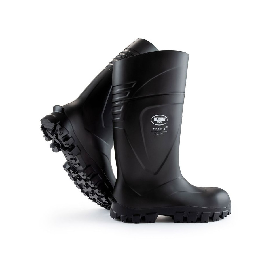Bottes professionnelles Bekina StepliteX Solidgrip S5 conçues pour les environnements agricoles, industriels ou de construction. Elles associent légèreté, résistance et isolation thermique élevée. Le chaussant large offre un confort optimisé même lors d’un port prolongé.