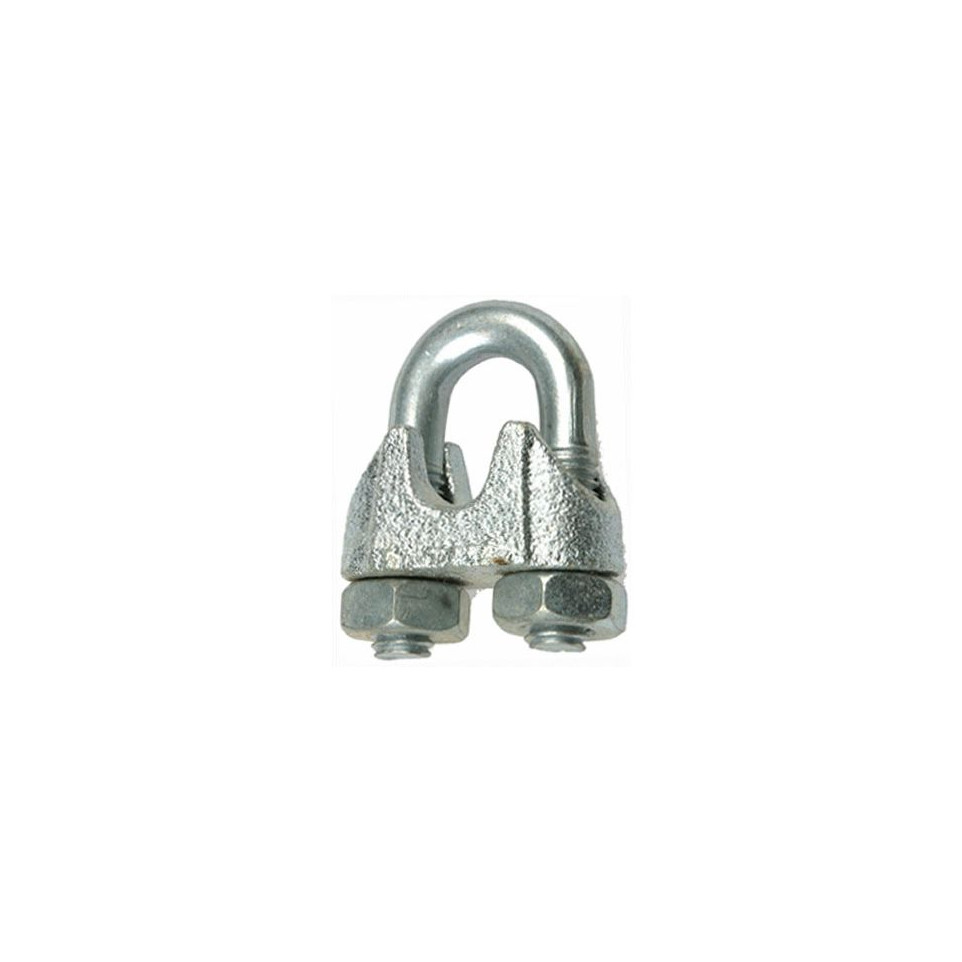 Serre-câble zingué conçu pour câbles de 5 mm de diamètre, idéal pour sécuriser et assembler cordages, câbles acier ou chaînes en milieux domestiques, industriels ou agricoles.