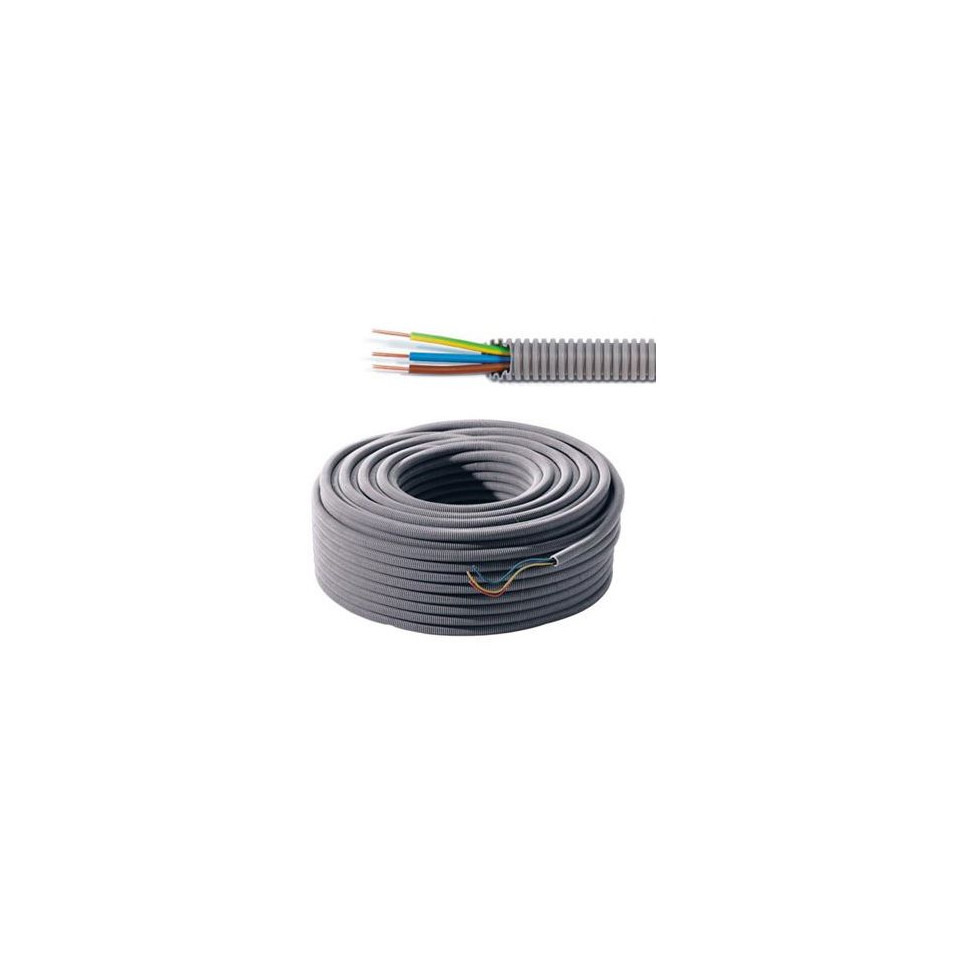 - Tube flexible en polypropylène, pré-équipé de trois conducteurs cuivre section 2,5 mm² dont un de protection (terre)