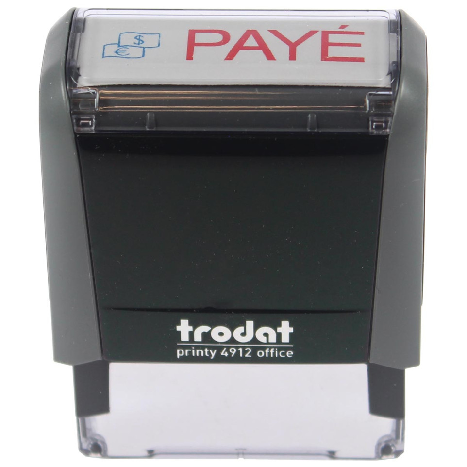 Cachet à formules Trodat Printy 4822 avec texte PAYE, idéal pour marquer rapidement les documents traités en environnement professionnel. Sa taille d’empreinte de 47 x 18 mm convient à une utilisation régulière en bureau.