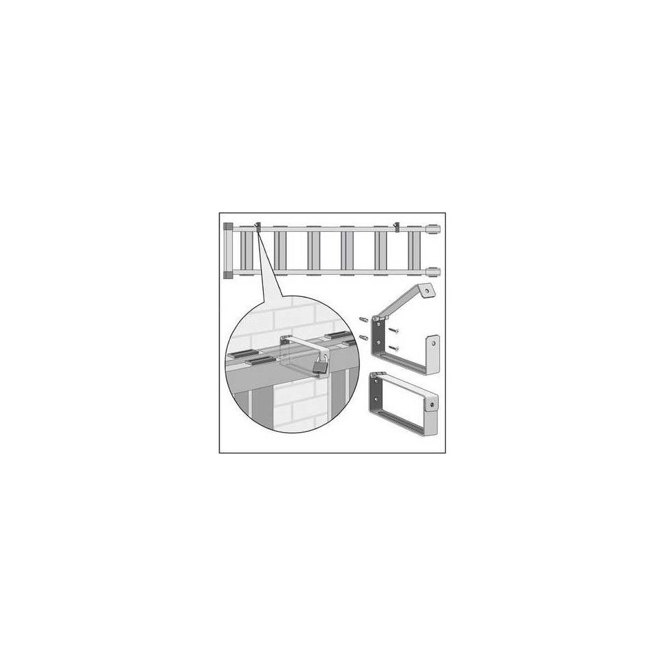 Ce support s’installe de façon permanente ou temporaire sur la zone souhaitée, maintenant l’échelle en position de rangement ou d’attente. Il suffit d’insérer l’échelle et d’ajouter un cadenas afin d’éviter son utilisation non contrôlée.