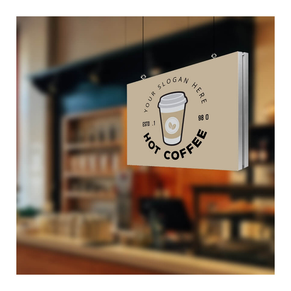 Composé de profilés de 44 mm en aluminium anodisé, le cadre textile recto verso est à la fois élégant et moderne. Conçu pour y tendre une toile textile imprimée, il se fixe très aisément au plafond grâce à son système de suspension.