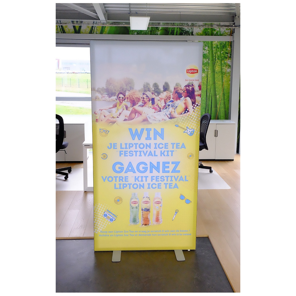 Pour décorer votre intérieur ou aménager un espace événementiel avec élégance et précision. Doté d’un profil de 44 mm en aluminium anodisé, le cadre textile recto verso autoportant ne nécessite aucun outil additionnel pour son montage et son utilisation. Livré avec 2 pieds plats.
