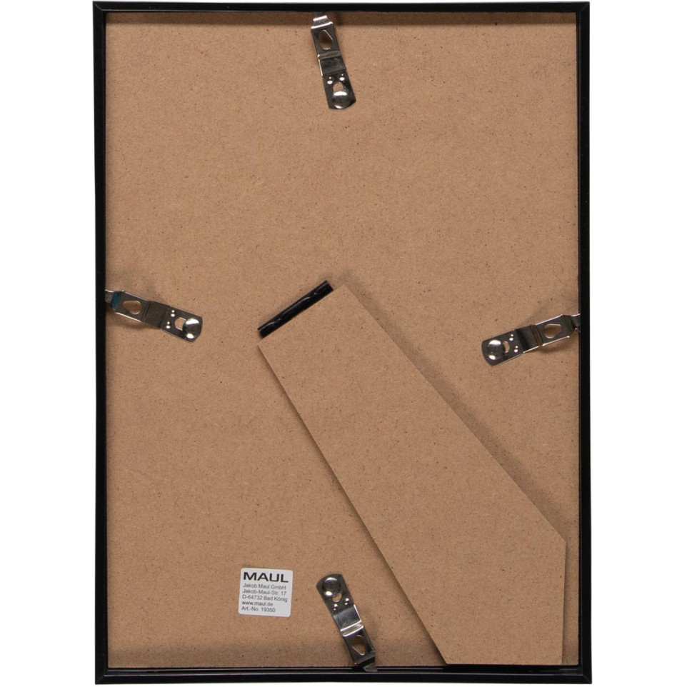 Le cadre photo MAULart en plastique noir, de format 15 x 21 cm, est conçu pour un usage versatile, tant au mur qu'en posé.