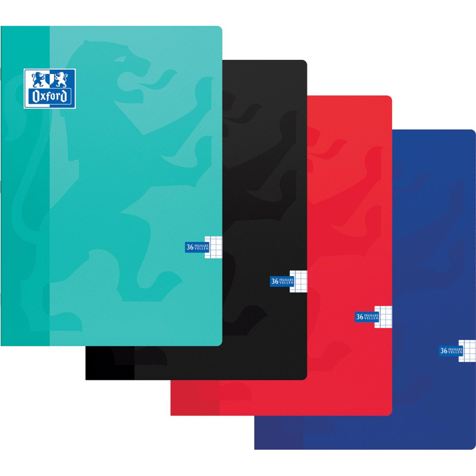 Cahier Oxford School au format A4 (21 x 29,7 cm), doté de 72 pages soit 36 feuilles quadrillées 5 mm, conçu pour la prise de notes, les exercices scolaires et l’organisation des devoirs, en couleurs assorties non sélectionnables.