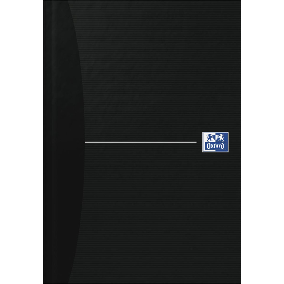 Cahier Oxford Office Essentials au format A5 (14,8 x 21 cm), 192 pages lignées, couverture rigide noire en carton, conçu pour une utilisation professionnelle ou scolaire nécessitant organisation et durabilité.