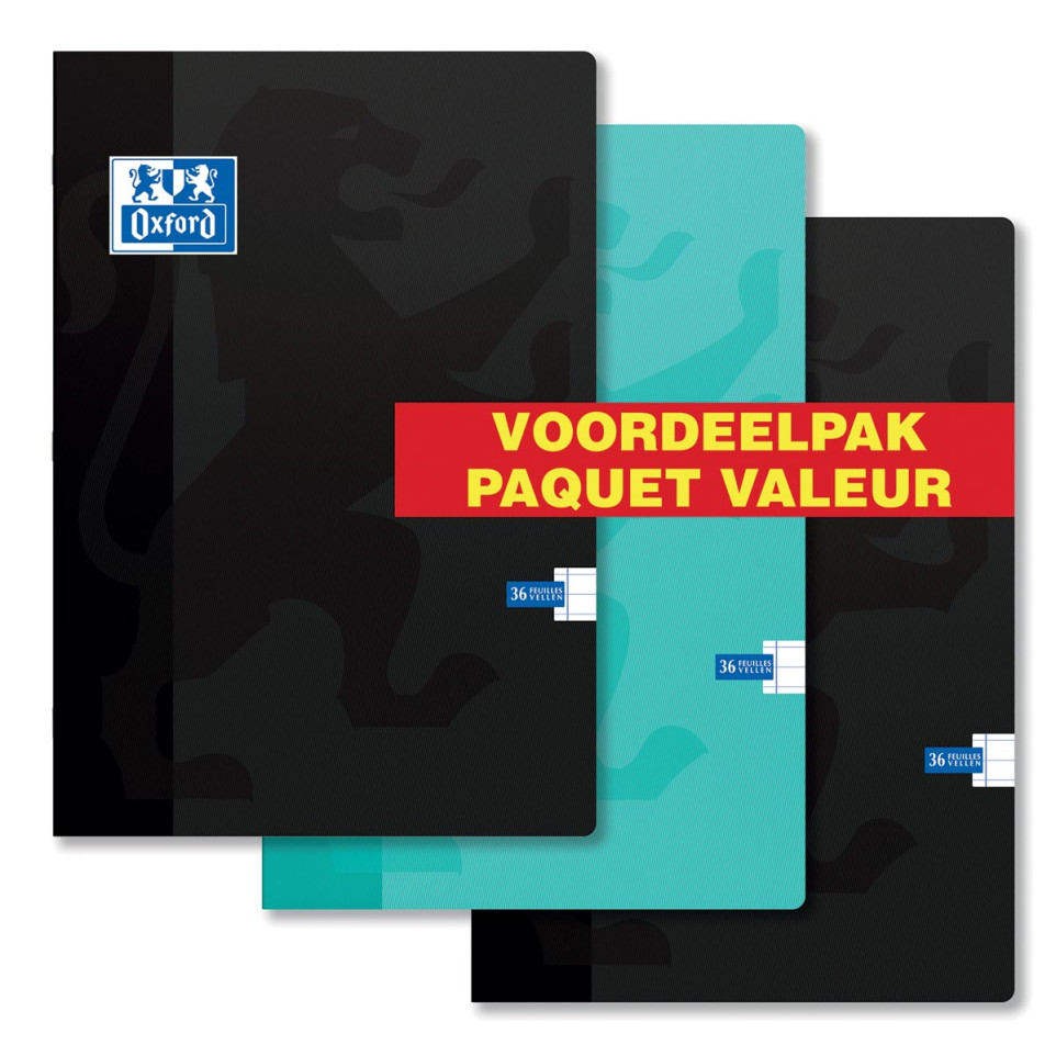 Oxford School cahier, ft A4, 72 pages (36 feuilles), geruit 10mm, paquet de 3 pièces,...