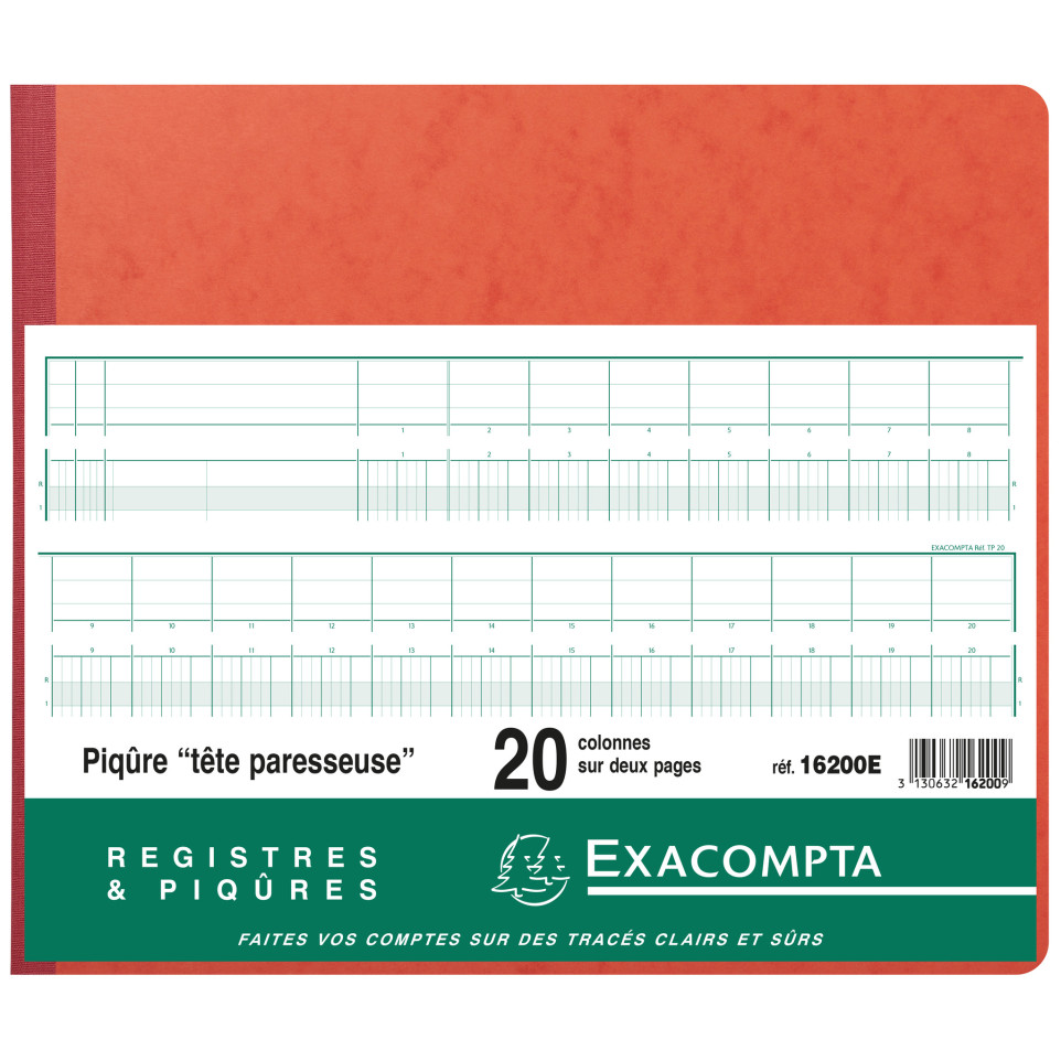 Piqûre 27x32cm à tête paresseuse 20 colonnes sur 2 pages - 28 lignes - 80 pages/ Pce