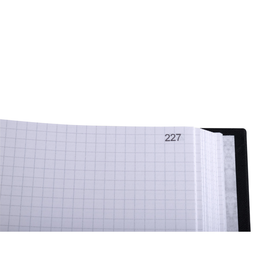 Registre 35x22,5cm 5x5 folioté 400 pages Ce registre quadrillé est destiné à tout enregistrement de faits ,compte-rendus,commandes Les pages sont numérotées pour éviter les ruptures ou falsifications La couverture rigide est recouverture d'une toile noire pour une meilleure résistance et longévité Papier intérieur vélin 90 grammes. Le papier vélin est un papier sans grain,soyeurx et lisse Dimensions 34 X 22,5 cm - 400 pages numérotées - Intérieur imprimé quadrillé 5x5 - petits carreaux - couverture rigide recouverte d'une toile noire. Les piqûres et registres Le Dauphin sont fabriqués à 100% en France