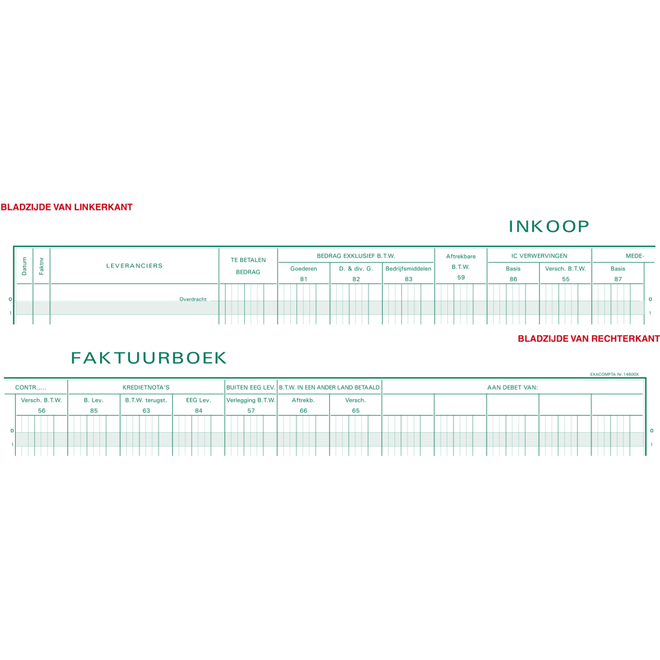 Piqûre TVA Entrées - texte NL - 31 lignes - avec feuille d'identification Les entreprises [belges ou étrangères] qui développent une activité économique sur le territoire belge sont tenues de respecter un certain nombre d obligations TVA. Les entreprises doivent tenir une comptabilité appropriée à l étendue de leurs activités en vue de permettre l application et le contrôle de la TVA. La comptabilité doit notamment détenir un facturier d entrée [dans lequel elles inscrivent les livraisons de biens et les prestations de services, les importations, les acquisitions intracommunautaires de biens, etc.], un facturier de sortie [dans lequel elles inscrivent les factures de ventes, les transferts de biens et les documents correctifs qui s y rapportent] et, le cas échéant, un journal des recettes. La clarté des tracés Exacompta et leur qualité d'impression avec une encre verte spéciale sont reconnues et appréciées depuis des années. Le Papier 110 g/m2 est légèrement teinté, spécialement étudié pour reposer la vue, et mat pour une écriture facile et nette Il est certifié FSC, un mode de gestion responsable des forêts. La couverture en carte lustrée est issue de nos papeteries Clairefontaine, elle est noble, rigide, résistante et écologique. Les piqûres et registres Exacompta sont fabriqués à 100% en France.