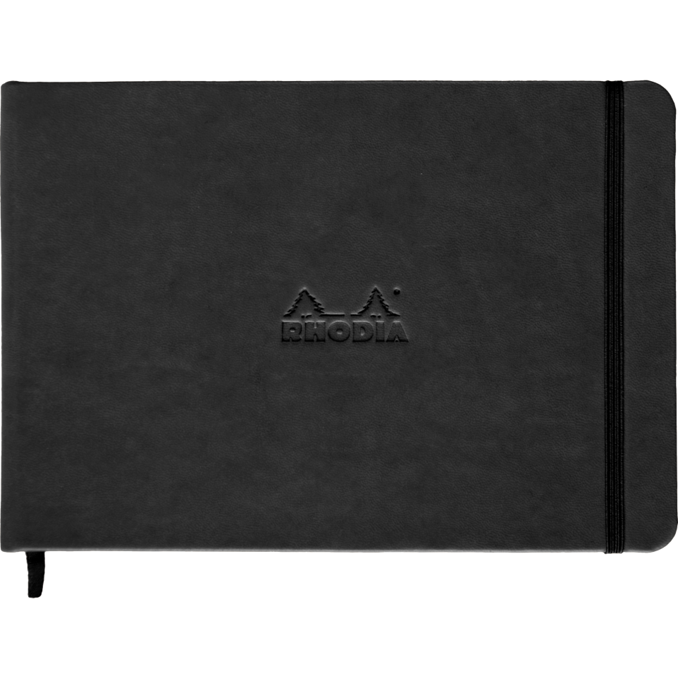Webnotebook A5 paysage 192 pages uni papier ivoire 90g fermeture élastique Des carnets qui parlent au coeur, parce qu'au-delà de leur élégance intemporelle et de leur design universel, il y a l'essentiel, l' incomparable papier ivoire vélin velouté 90 g. Devenus objets cultes de part le monde, on les surnomme affectueusement les Webbies. Couverture rigide en simili cuir italien, logo Rhodia embossé, fermeture élastique assorti. 192 pages, ruban marque-page assorti et pochette à soufflet. Papier Clairefontaine certifié PEFC.