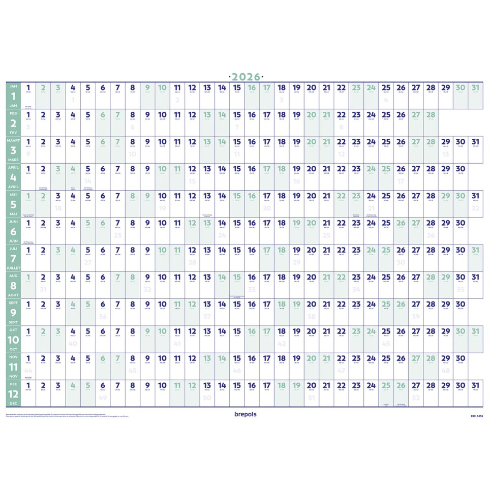 Le planning annuel Brepols 2026 est un calendrier mural conçu pour une organisation claire de l’année, idéal pour le bureau ou la maison. Son format généreux permet de visualiser l’ensemble de l’année sur un seul support.