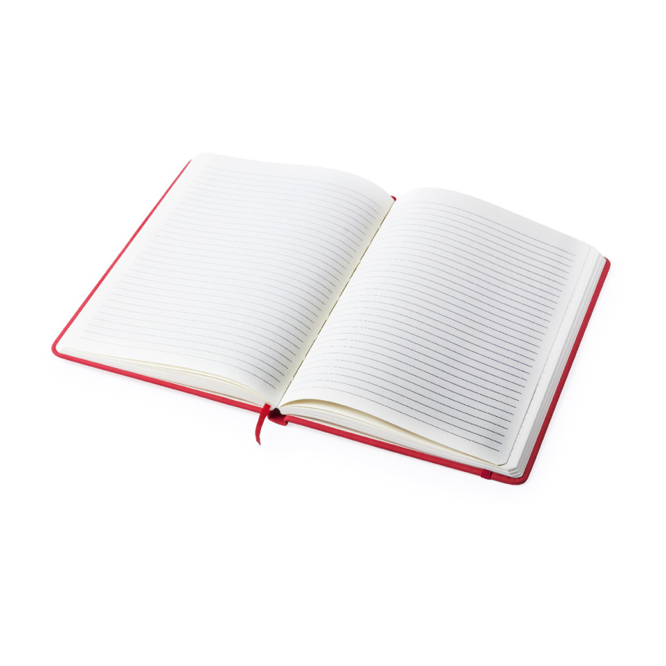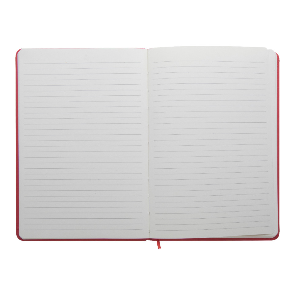Bloc-notes format A5, couverture en PU rouge, doté de 100 feuilles lignées, accompagné d’un marque-page intégré et d’un élastique caoutchouté. Idéal pour la prise de notes quotidienne au bureau, en réunion ou en déplacement.