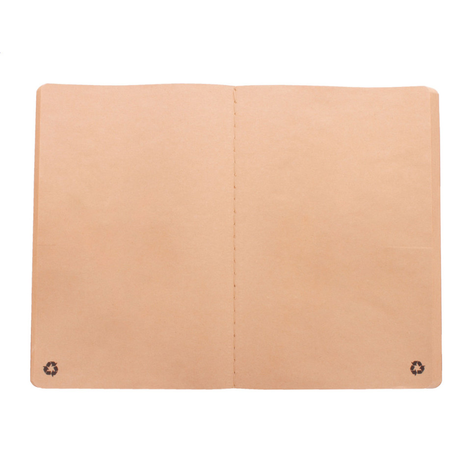 Carnet de notes format A6 recouvert de papier recyclé, doté d’une couverture cousue solide et de 60 feuilles vierges en papier kraft recyclé. Idéal pour prises de notes, croquis ou bullet journal lors de déplacements ou réunions.