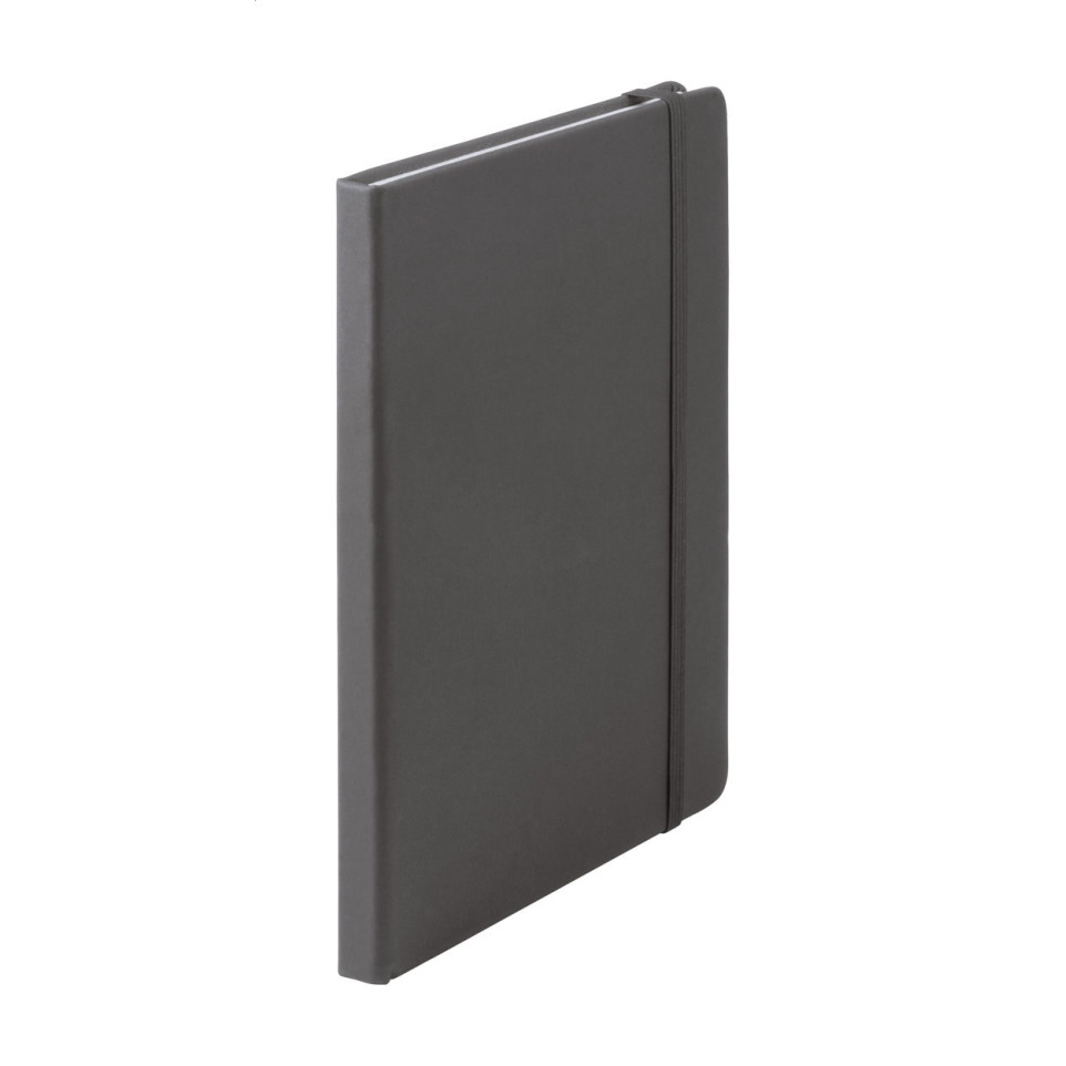 Bloc-notes élégant format A5 avec couverture en simili cuir gris, doté de 100 pages non lignées et d'un signet en caoutchouc pratique. Idéal pour les professionnels souhaitant prendre des notes avec style.