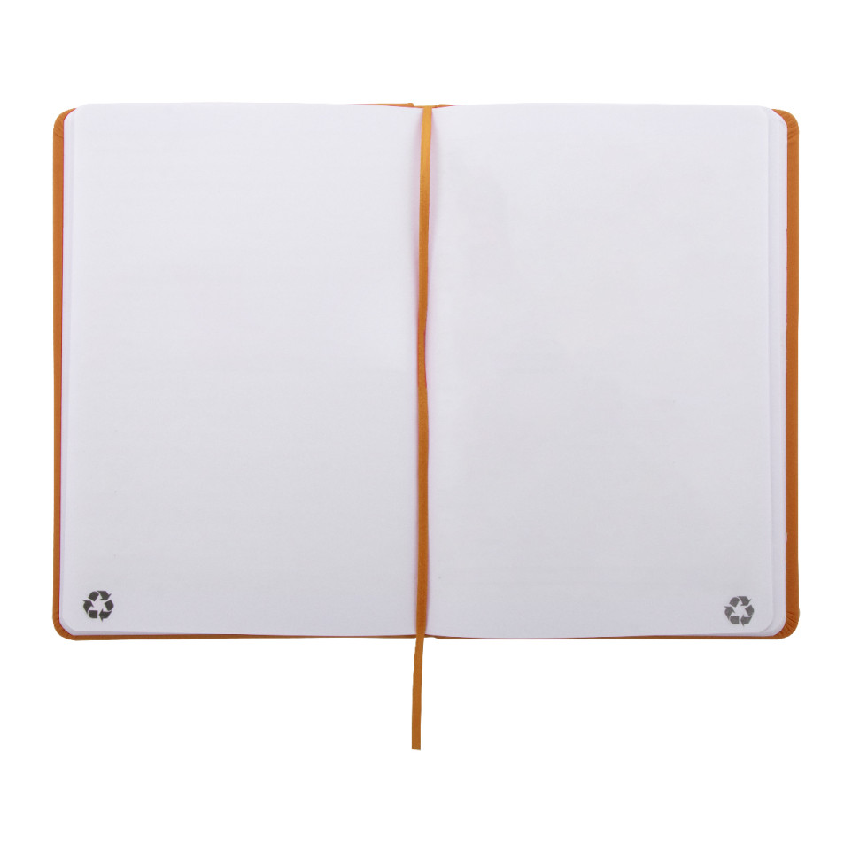 Carnet de notes A5 recouvert d’un similicuir recyclé, doté de 100 feuilles vierges en papier recyclé. Parfait pour capturer idées, croquis ou notes au bureau, en réunion ou en mobilité, tout en privilégiant une démarche respectueuse de l’environnement.