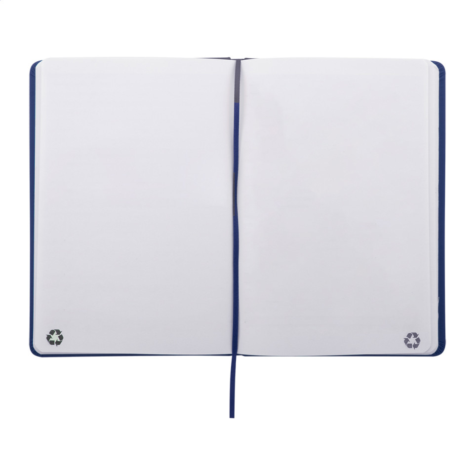 La couverture est en similicuir recyclé et le papier est également recyclé.