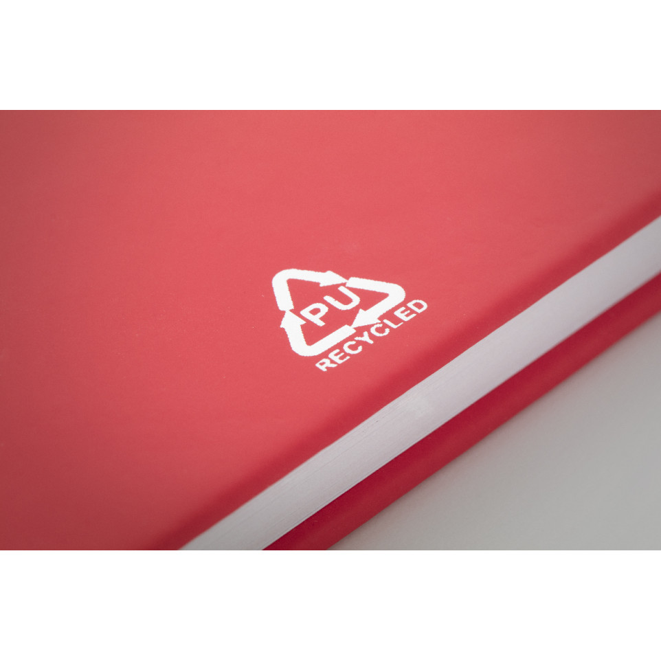 Carnet de notes format A6 recouvert de similicuir recyclé, doté de 100 feuilles vierges en papier recyclé. Idéal pour la prise de notes rapide, les esquisses ou la gestion quotidienne des tâches. Marque-page intégré et élastique assorti pour une organisation pratique.