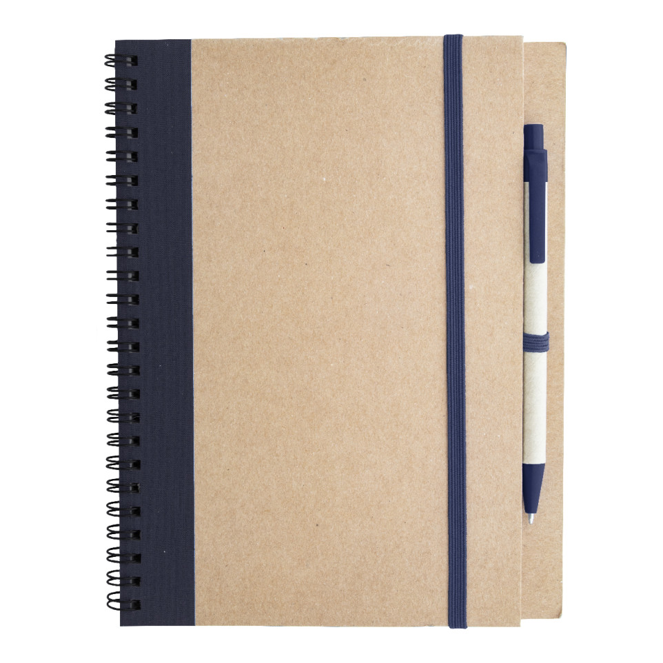 Bloc-notes Platanus A5 bleu foncé naturelle, idéal pour prendre des notes quotidiennes, lors de réunions ou en déplacement. Livré avec 60 pages non lignées en papier recyclé et un stylo à bille assorti.
